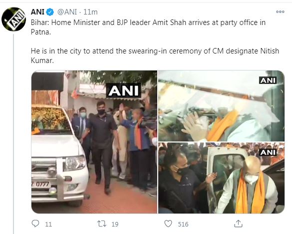द एचडी न्यूज डेस्क : राजनीतिक गलियारे से एक बड़ी खबर आ रही है. एनडीए के शपथ ग्रहण समारोह में भाग लेने गृह मंत्री अमित शाह व भाजपा के राष्ट्रीय अध्यक्ष जगत प्रकाश नड्डा पटना पहुंच चुके हैं. आज शाम 4.30 बजे नीतीश कुमार सहित कई मंत्री पद और गोपनीयता की शपथ लेंगे. वहीं बीजेपी के केंद्रीय संगठन महामंत्री बीएल संतोष भी पहुंचे हुए हैं. अमित शाह और जेपी नड्डा समेत कई नेता अब से कुछ ही देर में राजभवन पहुंचने वाले हैं.