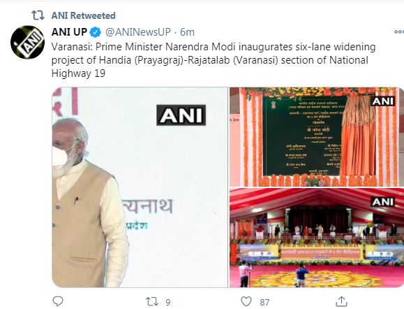 प्रधानमंत्री नरेंद्र मोदी ने वाराणसी-प्रयागराज 6-लेन हाइवे के चौड़ीकरण का लोकार्पण किया. 73 किलोमीटर के इस हाइवे के चौड़ीकरण पर 2447 करोड़ रुपया खर्च किया गया.